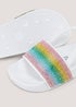 Girls White Rainbow Diamante Sliders (Younger 4-9)