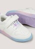 Learn moreCute and comfy in equal measure, these trendy trainers will liven up her casualwear. Featuring mock lace and a practical riptape strap, perfect for little hands to fasten, the white PU trainers are trimmed with a pastel ombre sole for added colour. Beaded detailing adds a sweet finishing touch.