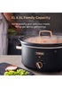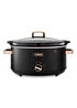Learn moreThis Tower Cavaletto 6.5 litre slow cooker is a great and cost-effective way to make deliciously healthy meals for all the family. There are three different heat settings to choose from - low, high and keep warm - so you can cook a range of dishes, including casseroles, soups, stews, curries and even bread, all ready when you get home in the evening. This slow cooker features an extra-large 6.5 litre capacity, making it perfect for larger wholesome family mealtimes. The tough glass lid gives you a clear view of the cooking process, so you get perfect cooking results every time. The crockpot is removable and with the cool to touch handles, you can safely serve straight to the table and after use, simply put it into the dishwasher for easy cleaning. Features a signature Cavaletto design, combining black with subtle rose gold accents to provide a stylish addition to today's contemporary kitchen.