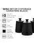 Learn moreThis set of three storage canisters from Sera are perfect for keeping your worktops tidy, whilst they can also be utilised to storage tea, coffee and sugar The stylish matte black finish with smoked black trim adds a sleek feel to any modern kitchen and perfectly complements any contemporary and traditional dcor. The lids are fully removable for easy access and completely airtight for long lasting freshness. The compact design and large 1.3L capacity ensures they take up minimal space on the countertop, whilst a simple wipe clean is all that is required to keep the canisters in pristine condition.