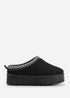 Where's That From Oak Black Faux-Suede Faux-Fur Platform Slipper Boots