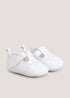Learn moreTop off your little lady's look with these adorable pram shoes. Styled in white, they feature a soft sole design to ensure little feet remain comfortable. In a classic T-bar design, the timeless baby shoes feature a riptape fastening for easy on/off, alongside delicate heart perforation and a scalloped edge. Soft jersey lining provides added comfort.