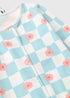 • 2 Pack Baby Blue Check Flower Sleepsuits (Newborn-36mths)