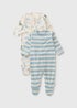 2 Pack Baby Multicolour Dino Stripe Sleepsuits ( Newborn-23mths)