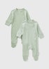 2 Pack Baby Sage Ribbed Sleepsuits (Newborn-12mths)