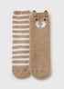 2 Pack Boys Brown Bear Fluffy Socks (Younger 6-Older 6.5)