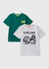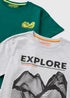 Learn moreGet your little adventurer ready for mountain adventures with our vibrant 2 pack green mountain t-shirts. Crafted from soft and durable cotton rich fabric, this twin pack of short-sleeve tees ensures all-day comfort during their outdoor escapades. Featuring a grey and green colour with mountain prints, these t-shirts will be comfortable and stylish for your little one.