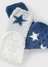 2 Pack Boys Navy Star Fluffy Socks (Younger 6-Older 6.5)