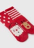 Learn moreKeep your little one's toes toasty this festive season with our adorable 2-pack of Santa and reindeer socks in a vibrant shade of red. Crafted from a soft and durable fluffy material, these socks will provide all-day comfort for your child's feet. With one Santa design and one Rudolph reindeer design, these socks are sure to add a touch of festive cheer while keeping their feet cosy.