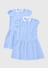 2 Pack Girls Blue Gingham Knit Collar Dress (4-13yrs)