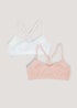 2 Pack Girls Coral & White Lace Back Seam Free Crop Tops (6-13yrs)