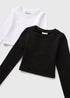2 Pack Girls Monochrome Long Sleeve T-Shirts (7-15yrs)