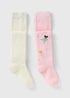 2 Pack Girls Pink & Cream Ballerina Tights (2-9yrs)
