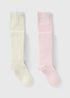 2 Pack Girls Pink & Cream Ribbed Tights (2-11yrs)