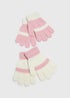 Get ready for a cosy adventures with our 2 pack pink stripe gloves! These delightful gloves are designed to keep your little one's hands cosy while ensuring they still look stylish. With one pair of pink stripes with a cream background and one pair with cream stripes and a pink background, these gloves are sure to get your little one excited.