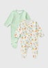 2 Pack Green Dino Sleepsuits (Newborn-23mths)