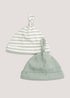 Top off baby's first wardrobe with these adorable hats. Crafted from 100% cotton with delicate skin in mind, the two-pack combine sage green and cream colourways for a trendy, tonal finish. A top knot design ensures a classic finishing touch.
