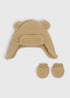• 2 Piece Baby Brown Borg Trapper & Mitten Set (Newborn-24mths)