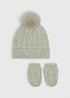 2 Piece Baby Grey Cable Hat & Mitten Set (Newborn-24mths)