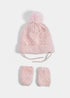 2 Piece Pink Diamond Baby Trapper Hat & Mittens Set (Newborn-2yrs)