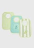- Pack of three green bibs with palm-inspired designs