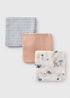 3 Pack Baby Multicolour Animal Stripe Muslin Cloths