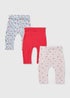 3 Pack Baby Multicolour Cherry Floral Leggings (Newborn-23mths)
