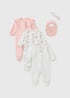 3 Pack Baby Pink Floral Frill Sleepsuit Set (Newborn-12mths)