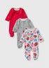 3 Pack Baby Red Strawberry Sleepsuits (Newborn-18mths)
