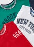 Learn moreGive your little one’s wardrobe a stylish upgrade with our 3 pack of varsity t-shirts. These comfortable t-shirts are perfect for everyday wear. The short sleeve design and added 100% cotton makes them perfect for any active child. With 1 red USA t-shirt, 1 green BROOKLYN USA t-shirt and 1 white NEW YORK CITY VIBES t-shirt, your child is ensured to look effortlessly cool while staying comfortable. Pair any of these tops with jeans and trainers for a casual everyday look or with shorts and trainers for any sport practice.