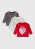 3 Pack Girls Black Heart Long Sleeve T-Shirts (1-7yrs)