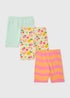 Keep her comfy and colourful with this cycling shorts trio. Crafted from soft stretch cotton, each short offers a snug yet flexible fit for active days. The set features a playful mix of prints and colours, including lemon fruit print, orange and pink strip and plain mint green. Each short is finished with a stretchy elasticated waistband for easy wear.
