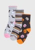 3 Pack Girls Multicolour Halloween Socks (Younger 6-Older 6.5)