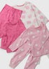 3 Pack Girls Pink Teddy Top & Bottom Pyjama Set (1-7yrs)