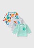 3 Pack Multicolour Dino Long Sleeve Tops (Newborn-23mths)