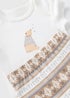 Learn moreYour little one's comfort is paramount, and our 3 piece baby cream bear bodysuit, leggings, and jacket set ensures they stay cosy and happy.The bodysuit and leggings are made from a soft and gentle 100% cotton fabric, ensuring maximum comfort while the adorable jacket has long sleeves and a hood for a warm wear. This set is perfect for a cosy day of play with an adorable bear print on the front of the top and fairisle print all over the leggings for a cute look. With hidden poppers on the gusset, this set combines practicality and style.