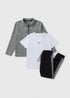 Learn moreThis stylish 3-piece set is perfect for the modern young gentleman. The grey check shacket is made from a cotton-rich blend for comfort and features a classic collar, button-down front, and two chest pockets. The matching trousers are are side panelled for a smart look and the plain white T-shirt completes the ensemble.