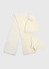 3 Piece Girls Cream Rib Hat Set (3-13yrs)