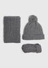 3 Piece Girls Grey Snuggle Hat, Scarf & Gloves Set (3-10yrs)