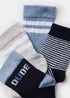 Learn moreStock up on daily essentials with this cute and comfy multipack. Soft and stretchy, it includes 4 pairs of socks in a mix of navy, blue, light grey and white. They're finished with playful stripe detailing and a fun 'Dude' slogan.