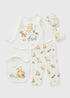 A charming four-piece gift set in soft cream tones, featuring sweet Winnie the Pooh illustrations for a timeless look. Thoughtfully designed for comfort and practicality, each piece is made from gentle fabric that feels soft against delicate skin. Perfect for everyday wear, cuddles, and special moments, it makes a lovely gift for welcoming a new baby.