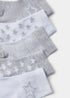Our snuggly grey and white socks, sold in a convenient pack of five, will keep little feet nice and cosy as they start exploring their world. Made from a soft and stretchy cotton blend, these classic ankle socks have ribbed cuffs to keep them in place, and feature a cute star and stripe pattern. Perfect for pairing with any outfit.
