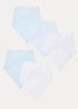 Wipe away baby's mealtime mess with this handy blue and white multipack. It includes 5 bandana-style bibs, all featuring a press stud fastening for easy on/off. Nice and comfy, they're lined with soft towelling and come complete in stripe, star and spot patterns, as well as plain variations.