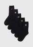 5 Pack Boys Black Football Embrodied Socks