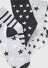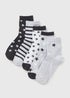 Learn moreThese vibrant and playful 5 Pack Girls Multicolour Star Socks are perfect for adding a touch of fun to your little one's everyday wardrobe. Crafted from a soft and durable cotton blend, these socks are gentle on delicate skin and keep feet cosy all day long. The reinforced heels and toes provide added longevity and comfort, making these socks a practical and stylish choice. This pack is in a grey and black colour, in a stripe and star pattern.