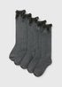 5 Pack Grey Bow Knee High Socks (Younger 6-Older 6.5)