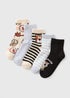 5 Pack Multicolour Lion Socks (Younger 6-Older 6.5)