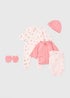 Welcome your little one in comfort and style with this adorable 5 Piece Premature Baby Pink Sleepsuit Set, specially designed for delicate newborns. Crafted from super-soft, gentle fabric, each piece is made to keep your baby cosy and comfortable from their very first days. The pink colour palette with sweet, subtle prints makes this set perfect for girls.