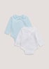 Baby 2 Pack Blue & White Layette Bodysuits (Tiny Baby-18mths)