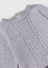 This knitted two-piece set comes in a versatile grey hue and features a convenient 3-button fasten on the back for easy dressing. The set includes two charming pieces designed for both warmth and comfort.